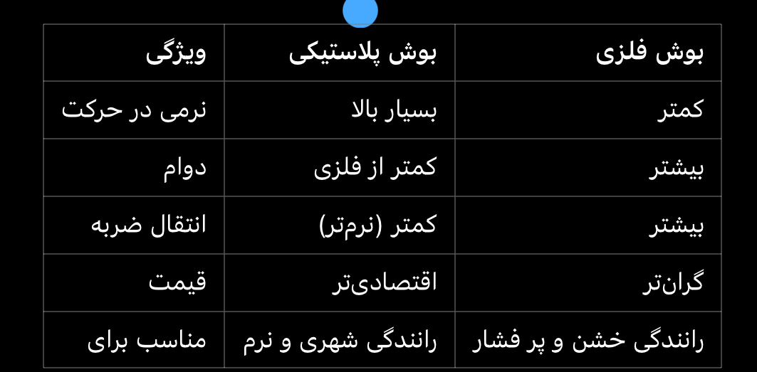 در طبقهای بوش فلزی، معمولاً صدای تقتق یا کوبش بعد از مدتی شنیده میشود. در مدل پلاستیکی، این صداها بسیار کمتر است و رانندگی بیصداتری را تجربه میکنید.