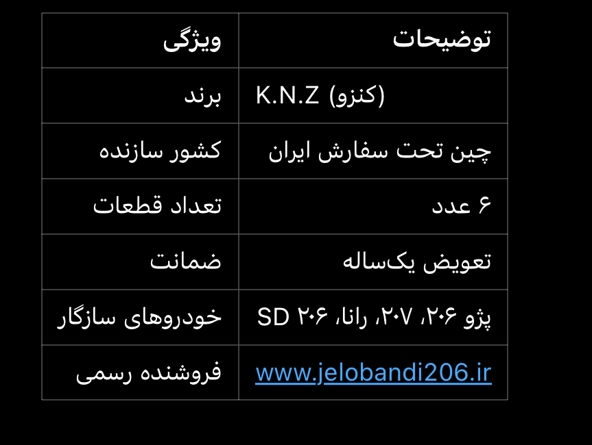 👉 پک کامل جلوبندی پژو 206 برند K.N.Z